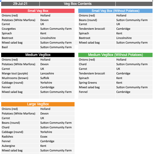 *And don’t forget you can also add or make up your own bag from individual portions of fruit ‘n’ veg, bread, eggs, honey and grains and pulses we offer!