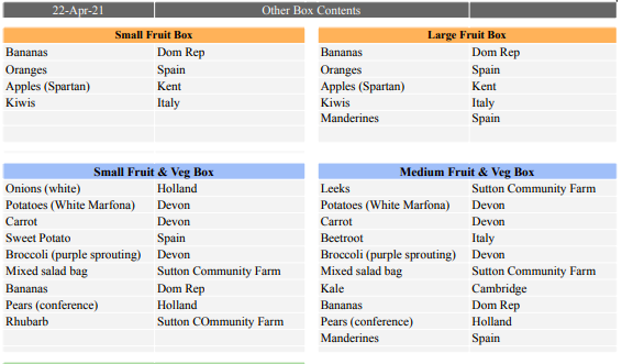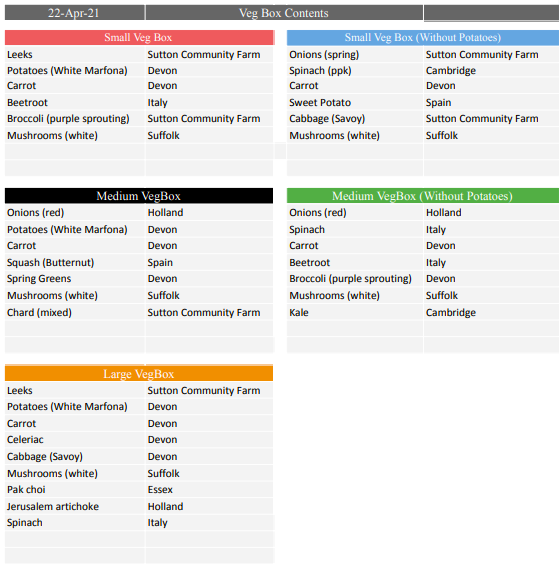 *And don’t forget you can also add or make up your own bag from individual portions of fruit ‘n’ veg, bread, eggs, honey and grains and pulses we offer!