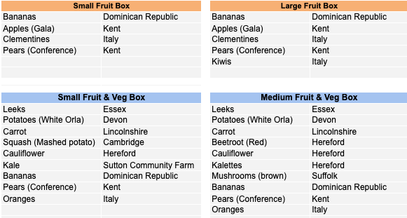Sutton Community Farm's seasonal VegBox contents for this week