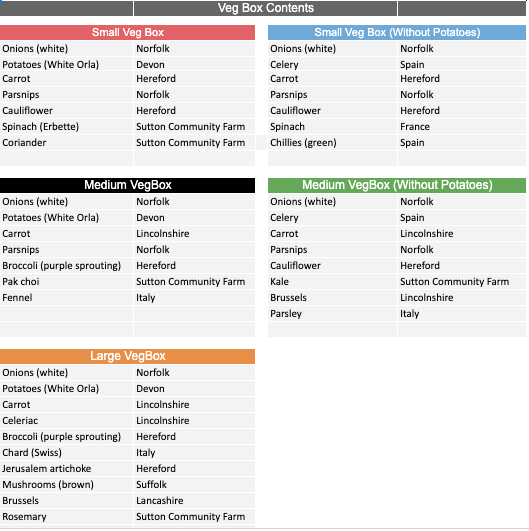 VegBox Contents: 1, 2 & 3 March