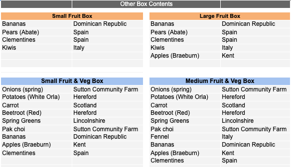 Sutton Community Farm's seasonal VegBox contents for this week