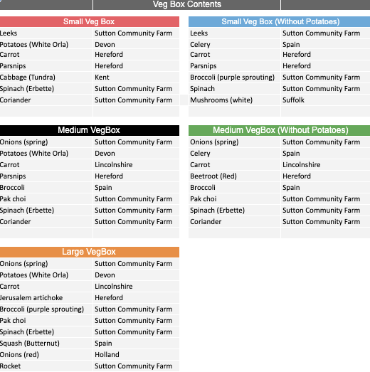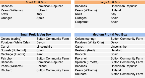 Sutton Community Farm's seasonal VegBox contents for this week