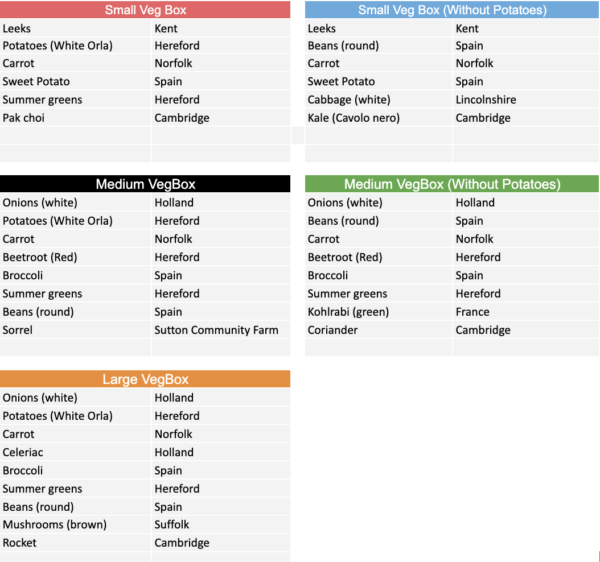 VegBox Contents are subject of availability.