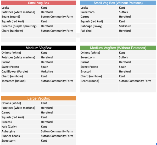 Sutton Community Farm's seasonal VegBox contents for this week