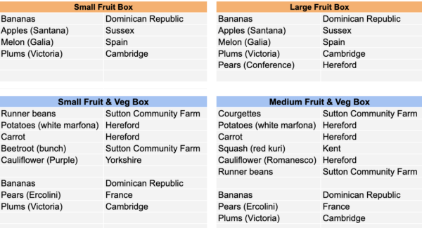 VegBox Contents 18, 19, 20 September