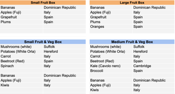 Sutton Community Farm's seasonal VegBox contents for this week