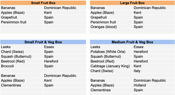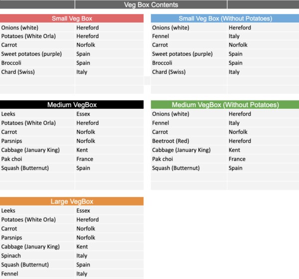 VegBox Contents: 5, 6, 7 February