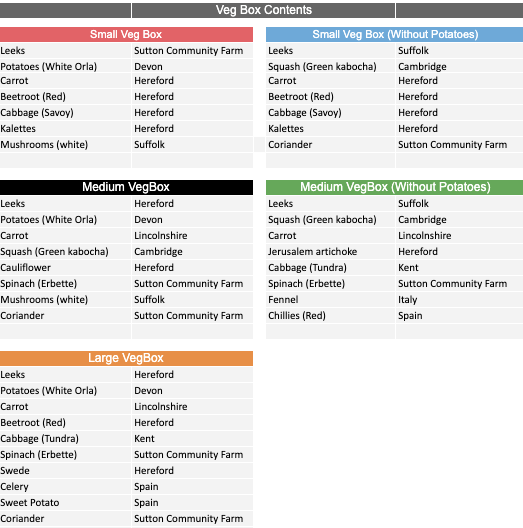 VegBox Contents: 8, 9 & 10 March
