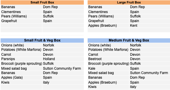 *And don’t forget you can also add or make up your own bag from individual portions of fruit ‘n’ veg, bread, eggs, honey and grains and pulses we offer!