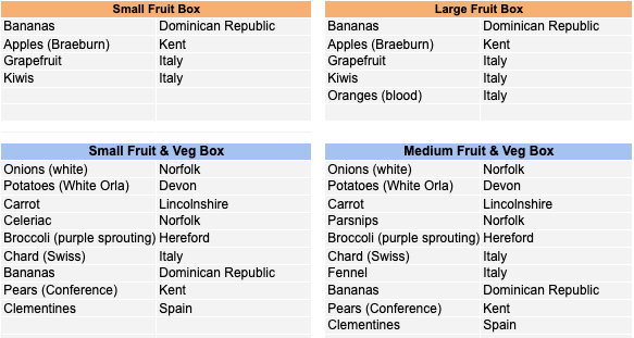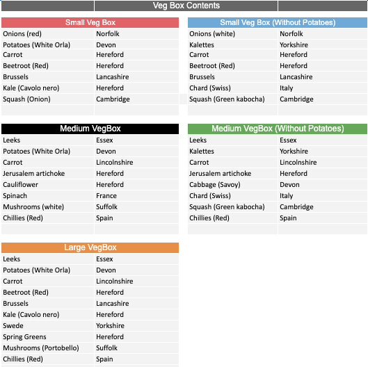 Sutton Community Farm's seasonal VegBox contents for this week.