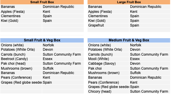 You can also add to a box order or make up your own order from individual portions of fruit and veg, bread, eggs, honey and grains and pulses we offer.
