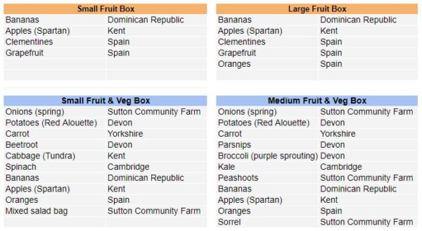 Click here to log in to your account to make any additions or amendments to your order, fruit or veg dislikes, delivery address or instructions before midnight on Sunday. Changes made after this point will not be processed until the following week.