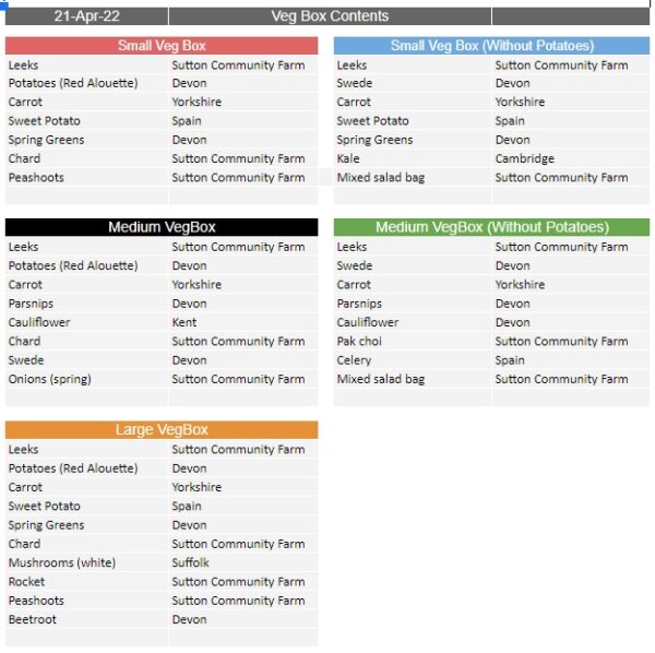 You can choose one of our set boxes, make up your own bag from individual portions of fruit and veg, bread, eggs, honey and grains and pulses or do a mix of the two. It’s up to you!