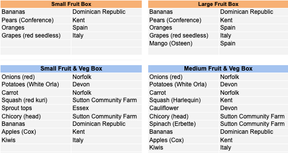 You can also add to a box order or make up your own order from individual portions of fruit and veg, bread, eggs, honey and grains and pulses we offer.