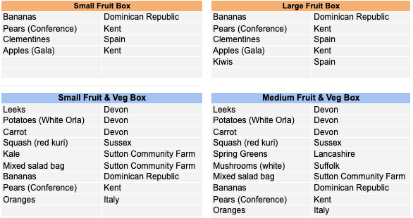 *And don’t forget you can also add or make up your own bag from individual portions of fruit ‘n’ veg, bread, eggs, honey and grains and pulses we offer!