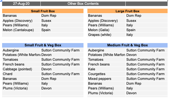 *And don’t forget you can also add or make up your own bag from individual portions of fruit ‘n’ veg, bread, eggs, honey and grains and pulses we offer!