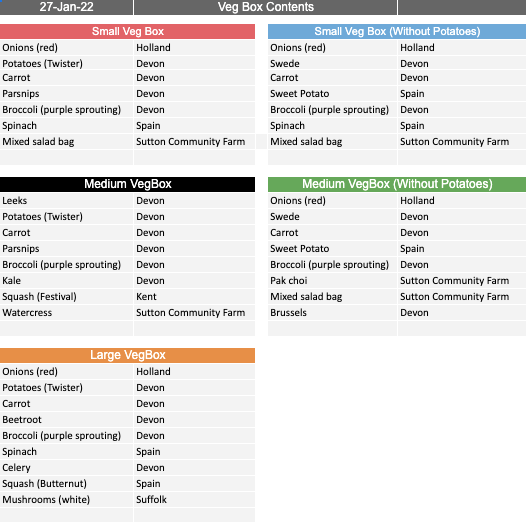 *And don’t forget you can also add or make up your own bag from individual portions of fruit ‘n’ veg, bread, eggs, honey and grains and pulses we offer!