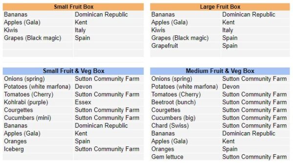 You can add to a box order or make up your own order from individual portions of fruit and veg, bread, eggs, honey and grains and pulses we offer.