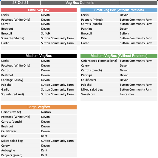 What’s in our Boxes: 28th & 29th October