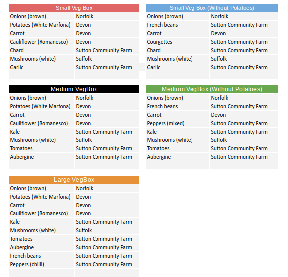 *And don’t forget you can also add or make up your own bag from individual portions of fruit ‘n’ veg, bread, eggs, honey and grains and pulses we offer!