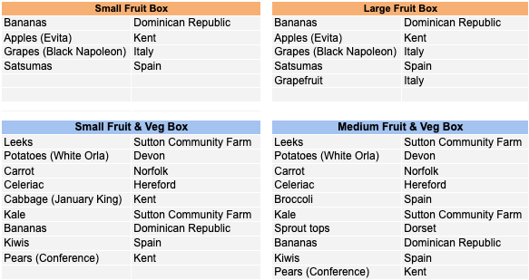 You can also add to a box order or make up your own order from individual portions of fruit and veg, bread, eggs, honey and grains and pulses we offer.