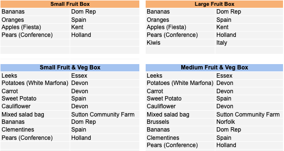 *And don’t forget you can also add or make up your own bag from individual portions of fruit ‘n’ veg, bread, eggs, honey and grains and pulses we offer!