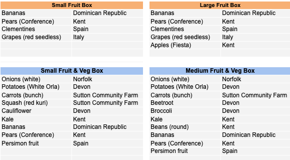 *And don’t forget you can also add or make up your own bag from individual portions of fruit ‘n’ veg, bread, eggs, honey and grains and pulses we offer!
