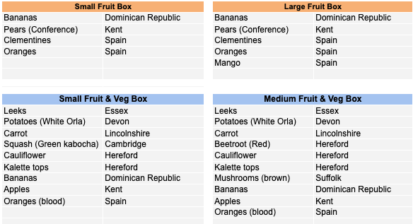 You can also add to a box order or make up your own order from individual portions of fruit and veg, bread, eggs, honey and grains and pulses we offer.
