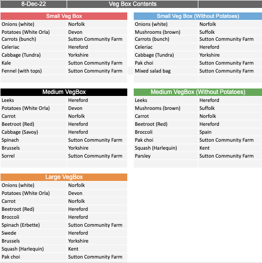 You can also add to a box order or make up your own order from individual portions of fruit and veg, bread, eggs, honey and grains and pulses we offer.
