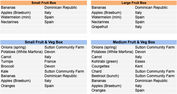 *And don’t forget you can also add or make up your own bag from individual portions of fruit ‘n’ veg, bread, eggs, honey and grains and pulses we offer!