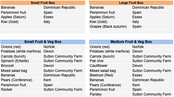 You can also add to a box order or make up your own order from individual portions of fruit and veg, bread, eggs, honey and grains and pulses we offer.